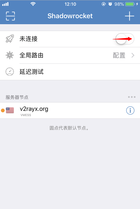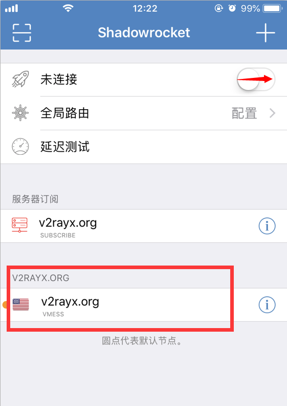 填加完成后,会立即从订阅地址中获取节点信息,选择任意节点,向右滑动连结